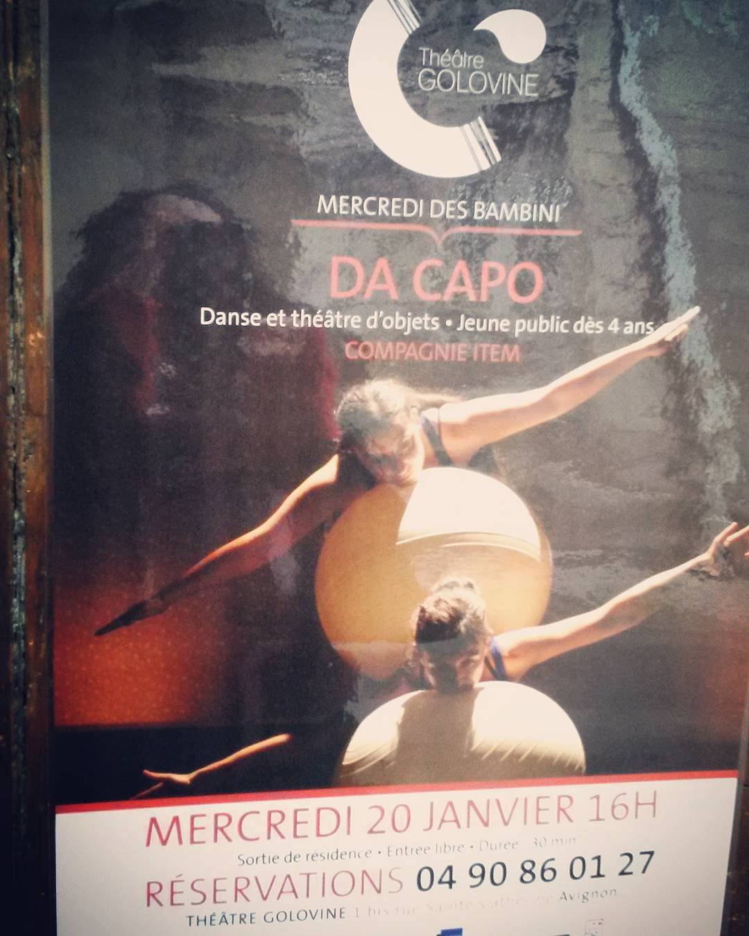 JANVIER 2016 // La compagnie est en résidence au théâtre Golovine à Avignon, et donnera deux représentations du spectacle DA CAPO le mercredi 20 janvier : le matin pour des scolaires et à 16h ouvert au public.